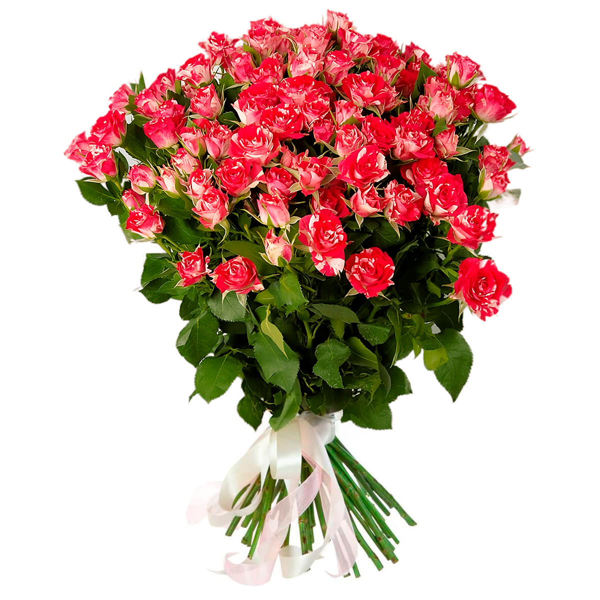Розы Кустовые красно-белые с доставкой по г Артёмовский: вы можете заказать букет в цветочном гипермаркете «Флормания» по цене за 450 руб.