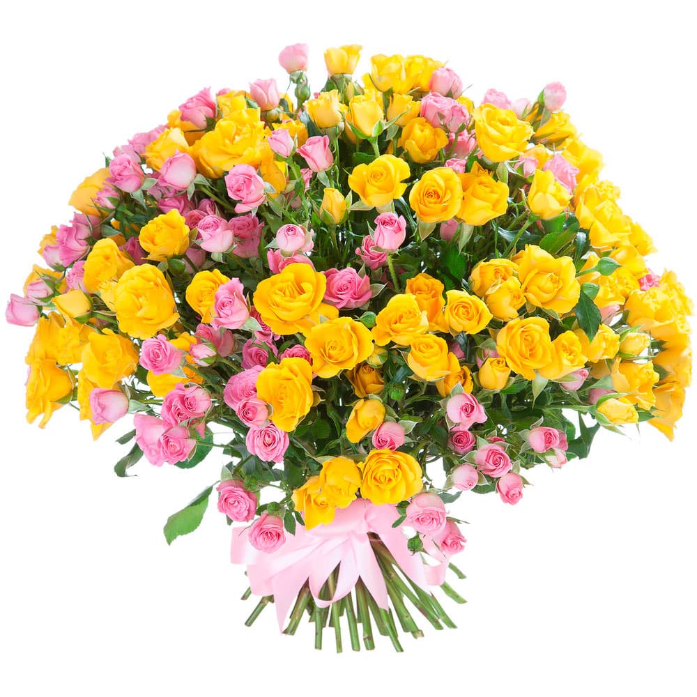 Роза кустовая желтая, розовая.
