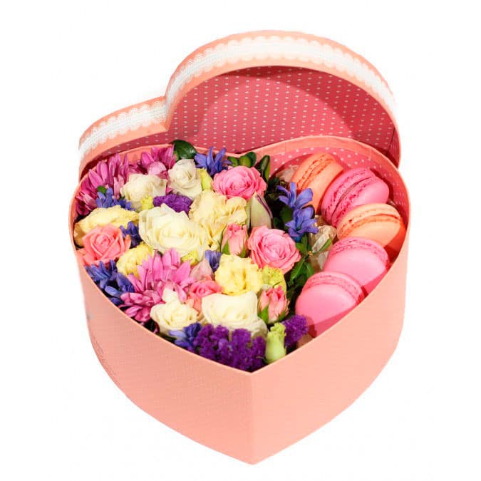 Цветы в коробке «С печеньем» с доставкой по г Артёмовский: вы можете заказать букет в супермаркете цветов «Флормания» по цене от 3390 руб.