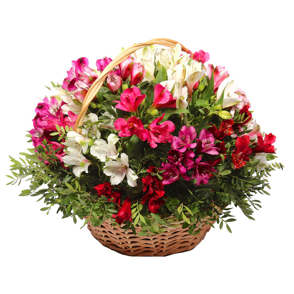 Цветы в корзинке «Краски альстромерий» с доставкой по г Артёмовский: вы можете заказать букет в цветочном интернет-магазине «Флормания» по цене от 3890 руб.