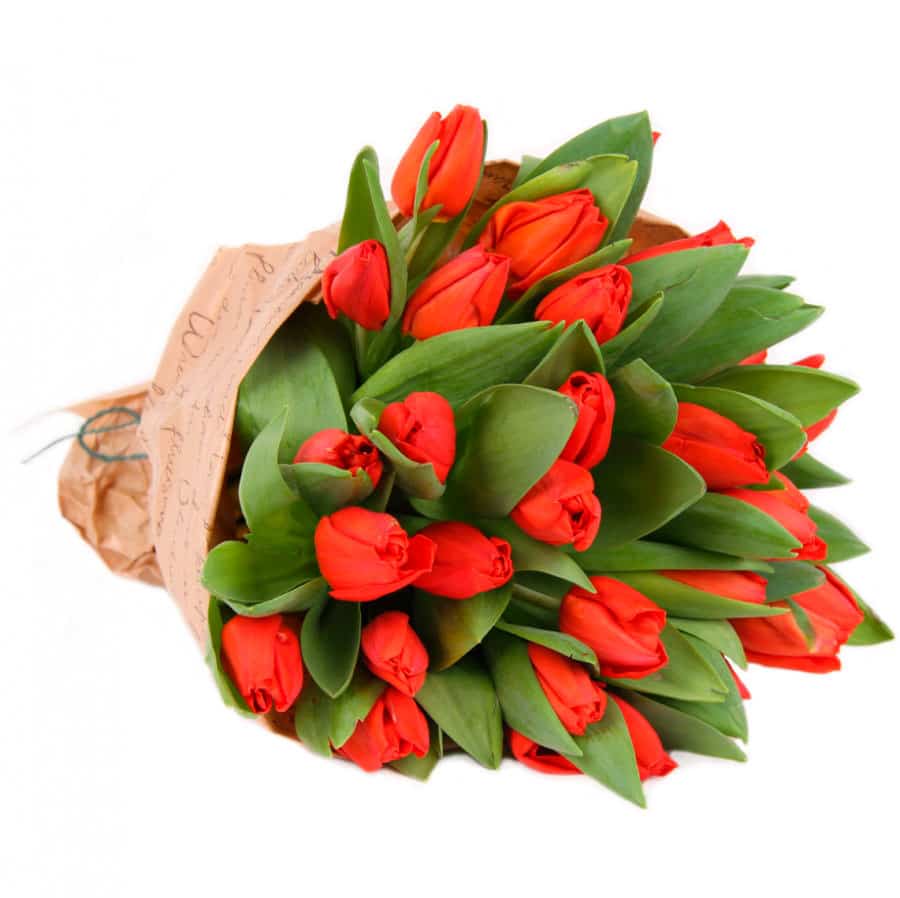 Тюльпаны красные с доставкой по г Артёмовский: вы можете заказать букет в цветочном интернет-магазине «Флормания» по цене за 160 руб.
